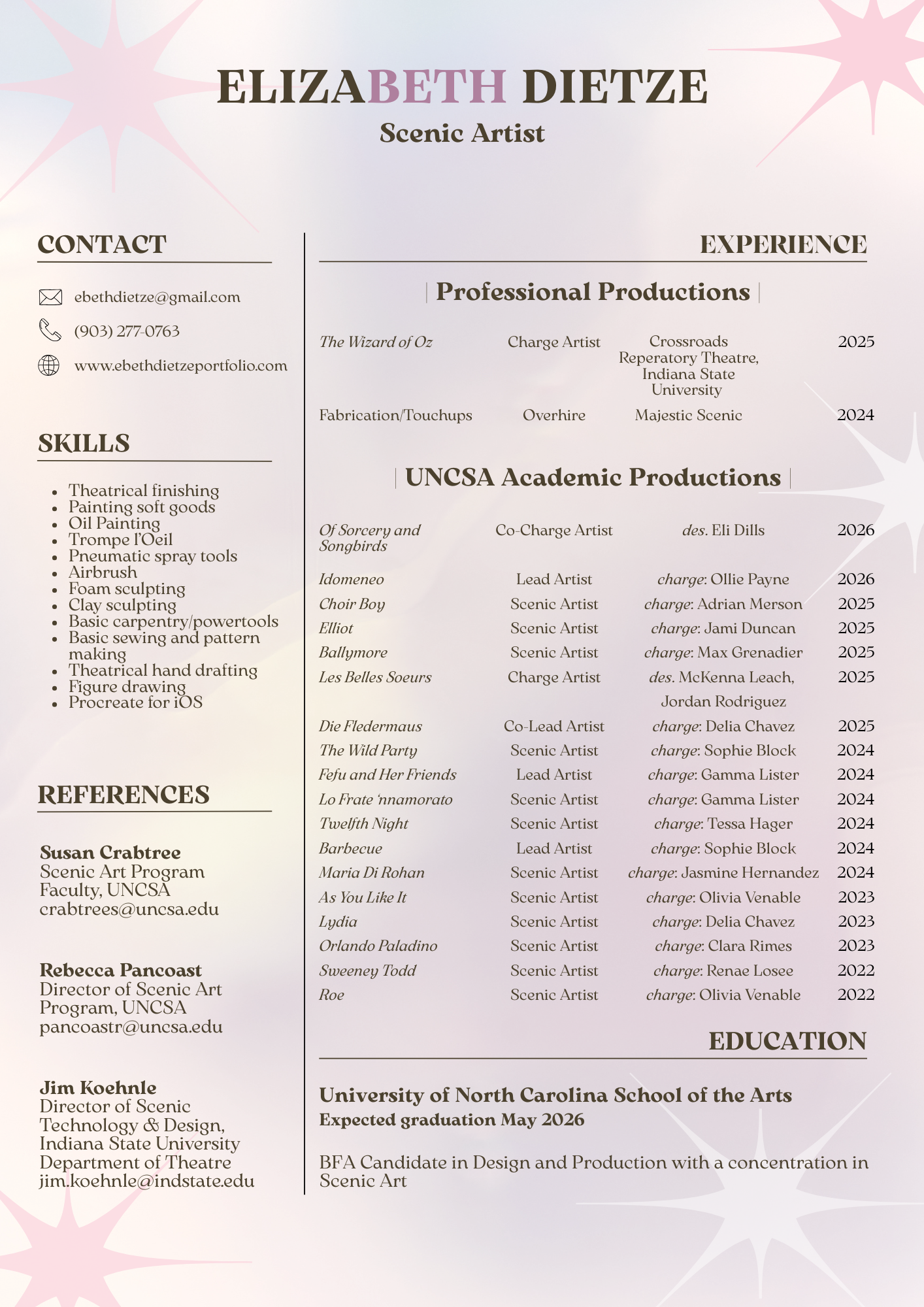 Elizabeth (Beth) Dietze- Scenic Artist